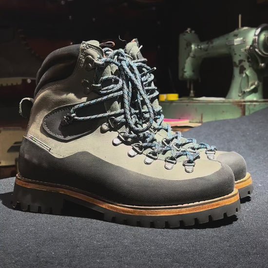 Bota de alta montaña fabricada artesanalmente en cuero, caracterizadas por su impermeablilidad de alta calidad, diseñada para enfrentar condiciones extremas. Su construcción tradicional ofrece durabilidad y resistencia incomparables, mientras que la suela con dibujo profundo garantiza agarre excepcional en terrenos técnicos y rocosos. Ideal para alpinismo, escalada y travesías exigentes.